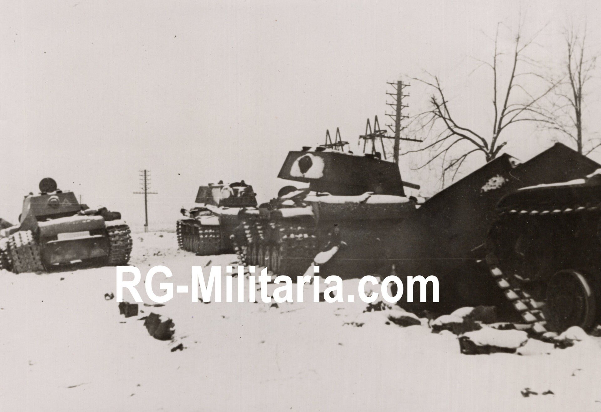 Original WW2 German Press Photo - Destroyed Russian KV-1 Panzer Tanks, Leningrad, Eastern Front (1941)