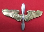 Original era manufacture. Great looking piece of WWII insignia large pattern winged prop with a 3 inch wingspan, sterling marked on the reverse. Postwar clutchback attachments. Normal age and wear.