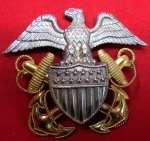 Original period manufacture. Beautiful detail to the eagle's feathering which is PANCRAFT and Sterling marked on the reverse, the crossed anchors also PANCRAFT marked. Full size insignia for the visor hat, produced by a Los Angeles California tailor shop. Sterling is .925 silver.