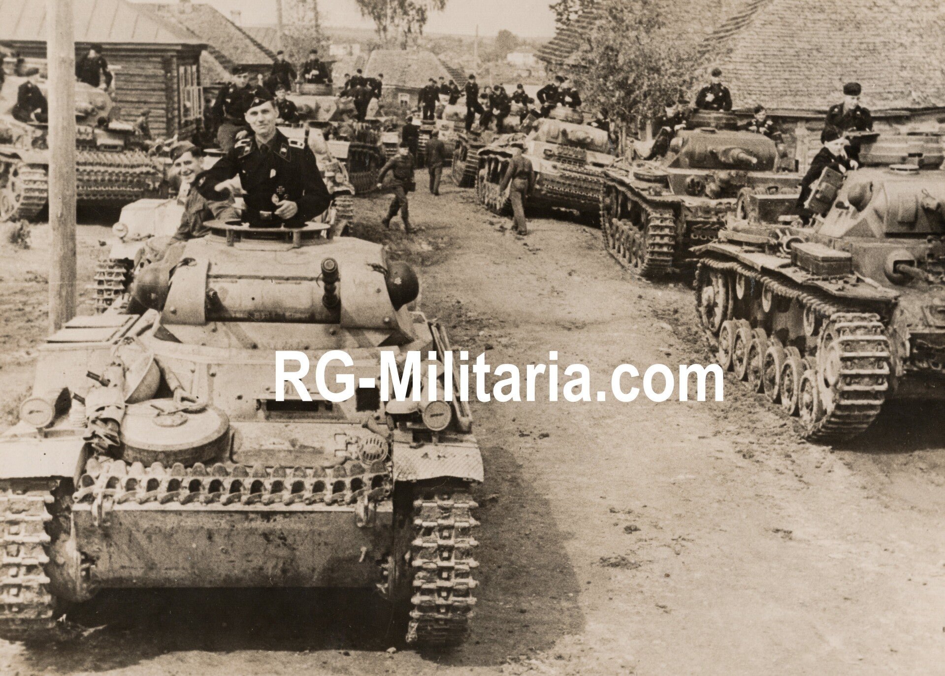 Original WW2 German Press Photo - German Panzer 2, 3 & 4 Tanks near Rschew, Eastern Front (1942)Approximately 18 x 24 cmBy Kriegsberichter UlrichOriginele Wo2 Duitse Persfoto - Duitse Panzer II, III & IV Tanks bij Rschew, Oostfront (1942)Ongeveer 18 x 24 cmDoor Kriegsberichter Ulrich