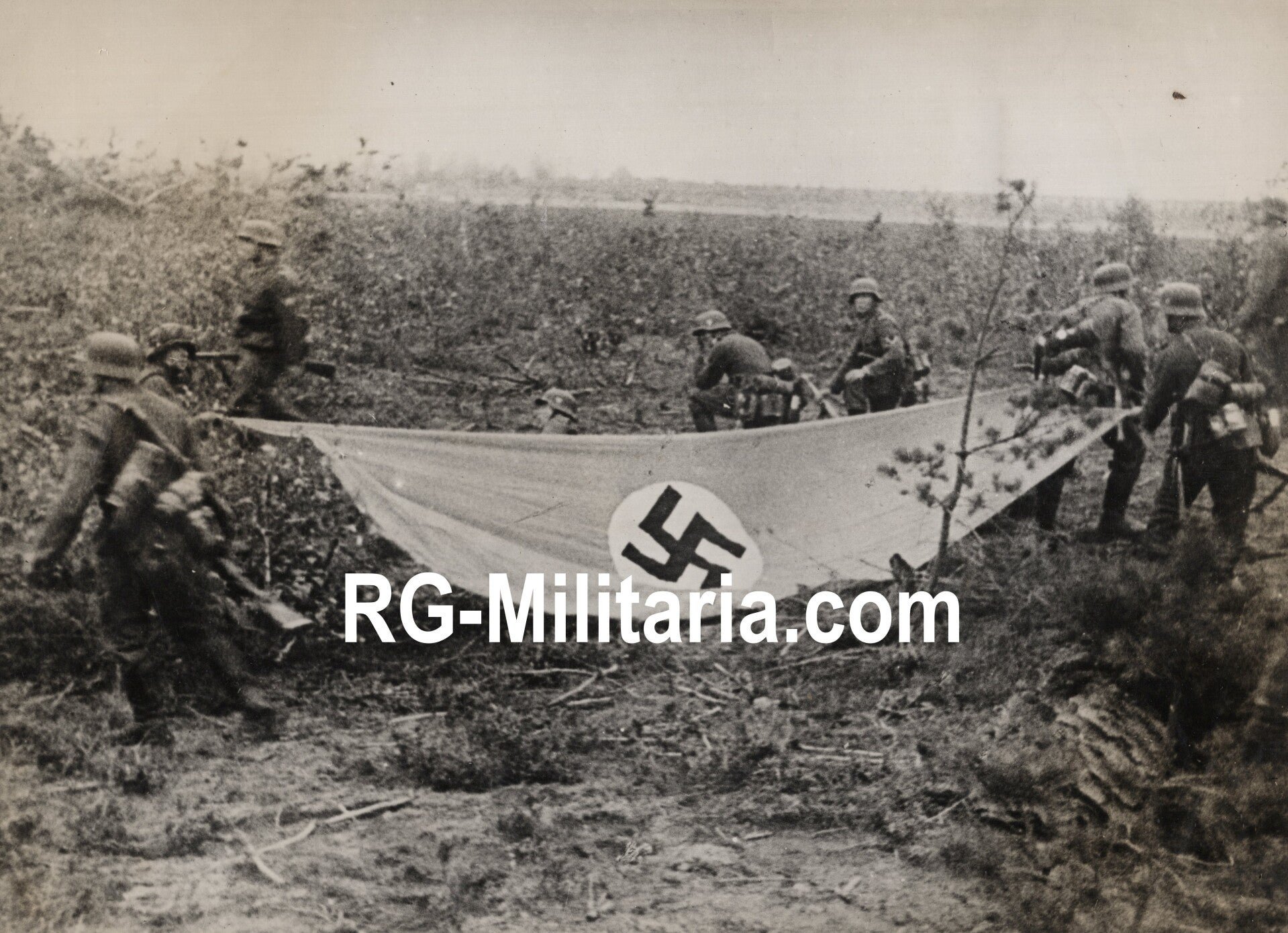Original WW2 German Press Photo - German NSDAP flag at the Eastern Front (1941)