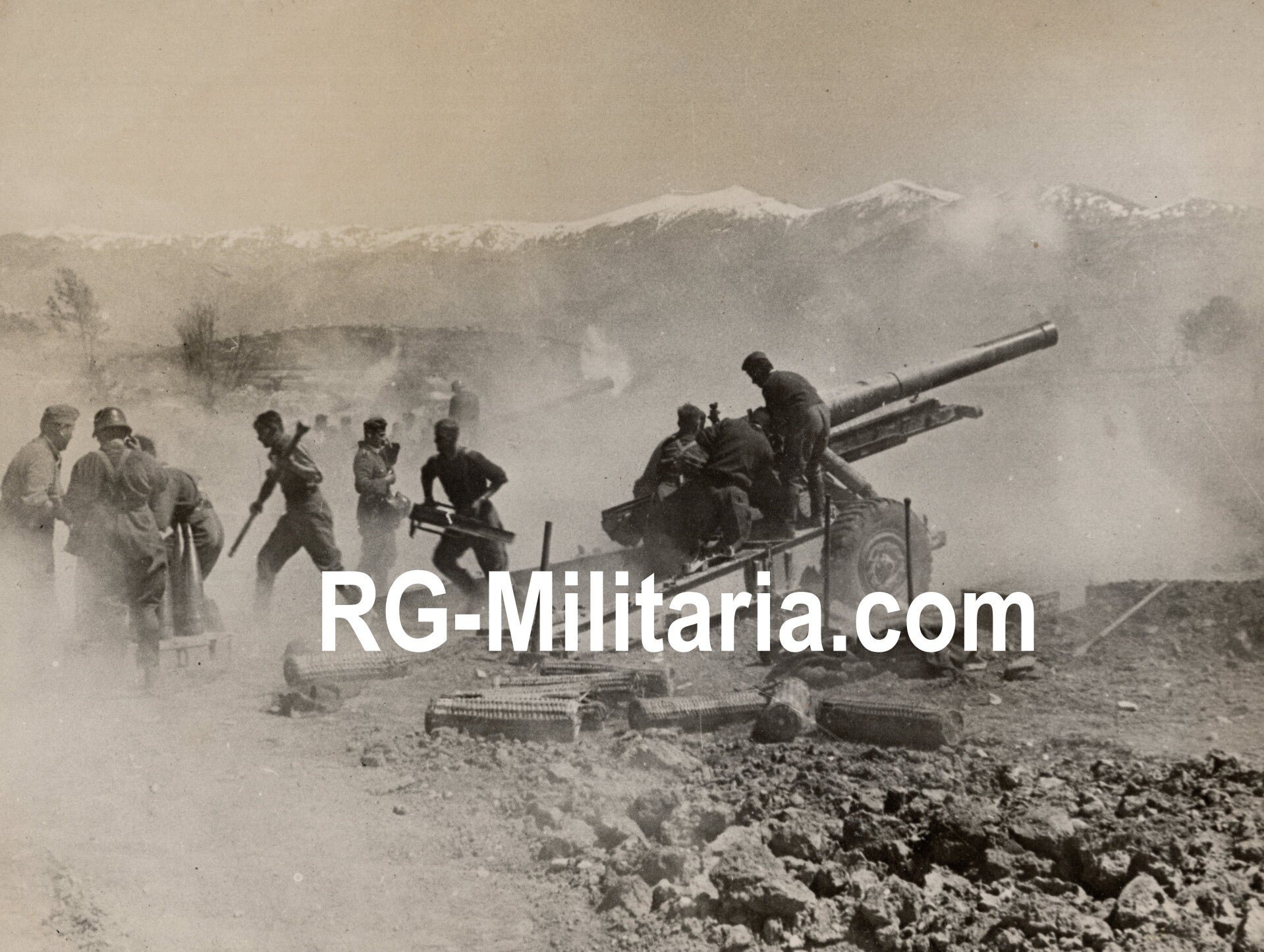 Original WW2 German Press Photo - Artillery fire shooting at the British in Greece (1941)Approximately 18 x 24 cmOriginele Wo2 Duitse Persfoto - Artillerie beschietingen op Britse doelen in Griekenland (1941)Ongeveer 18 x 24 cm