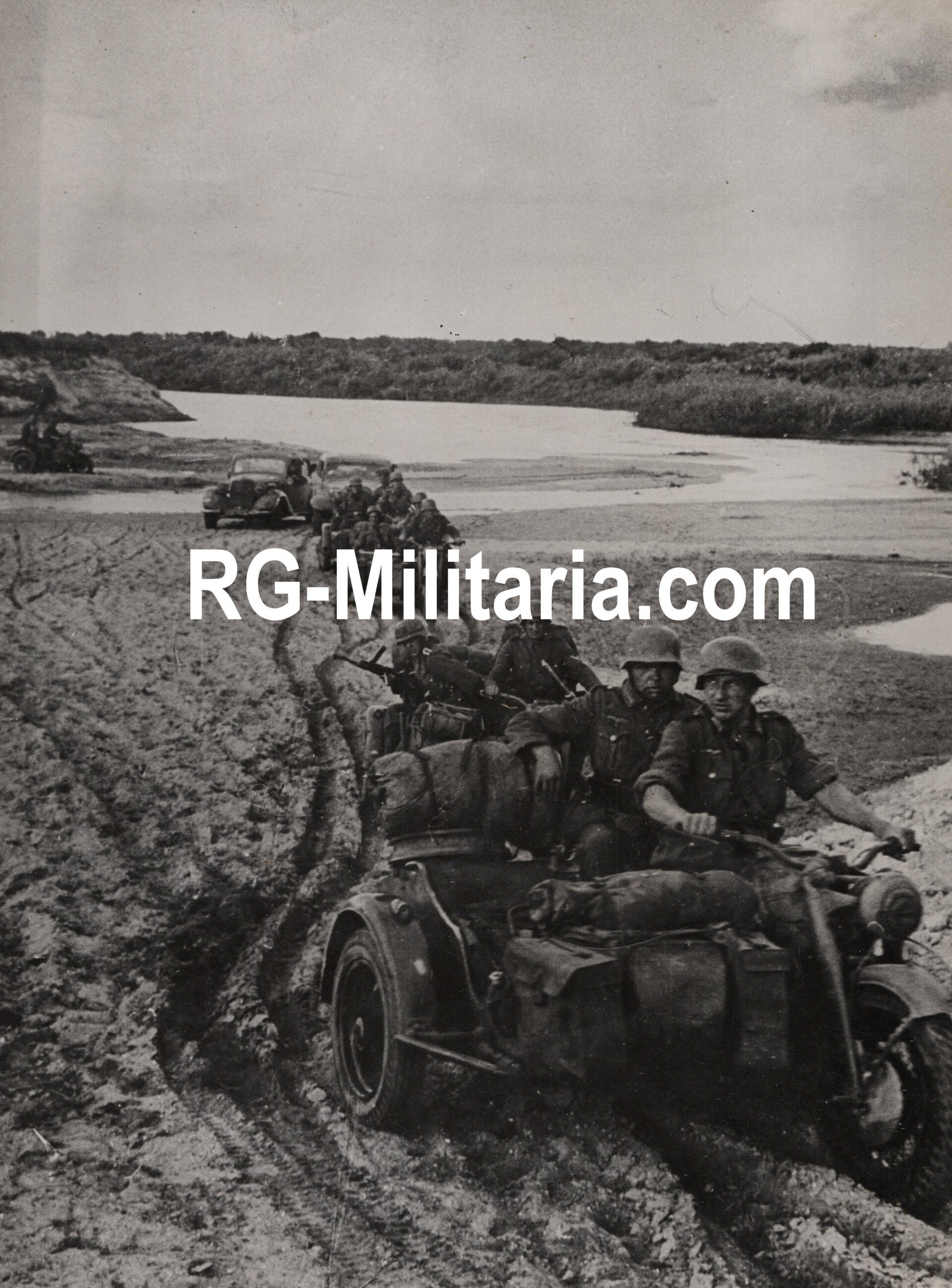 Original WW2 German Press Photo - Motorcycles in Don Bogen, Eastern Front (1942)