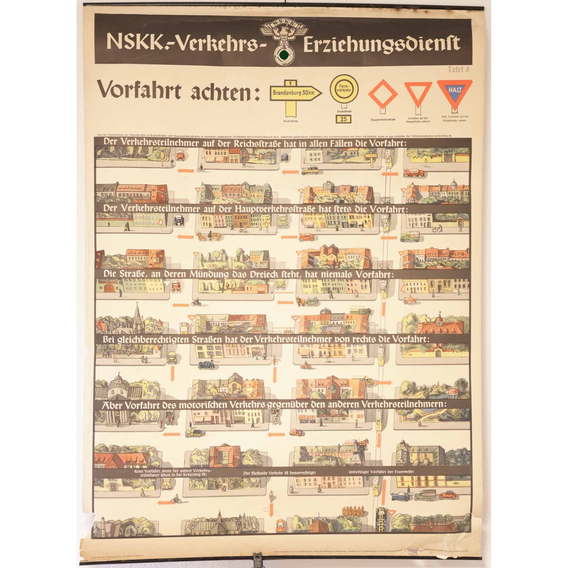 3.Reich Original Plakat 'NSKK Verkehrs-Erziehungsdienst' Tafel 5
