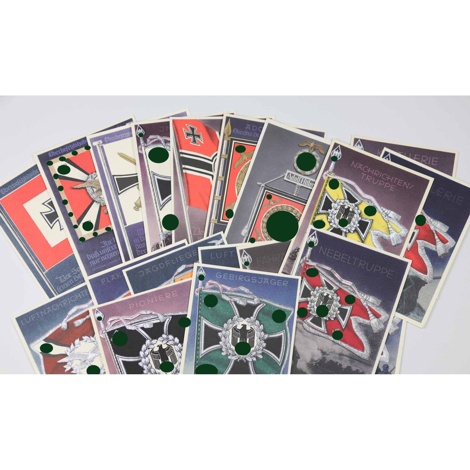 3.Reich Postkarten Serie 'Die Siegreichen Fahnen und Standarten der Deutschen Wehrmacht', vollständig, extrem selten!