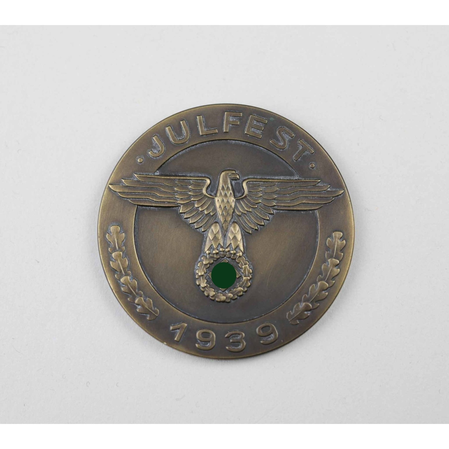Seltene SS-Medaille 'Julfest 1939' 'Die schwarze Garde SS Oberabschnitt Ost' Deschler & Sohn