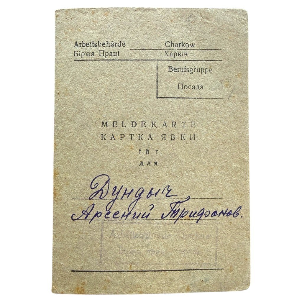 Original WWII German Meldekarte Arbeitsbehörde Charkow