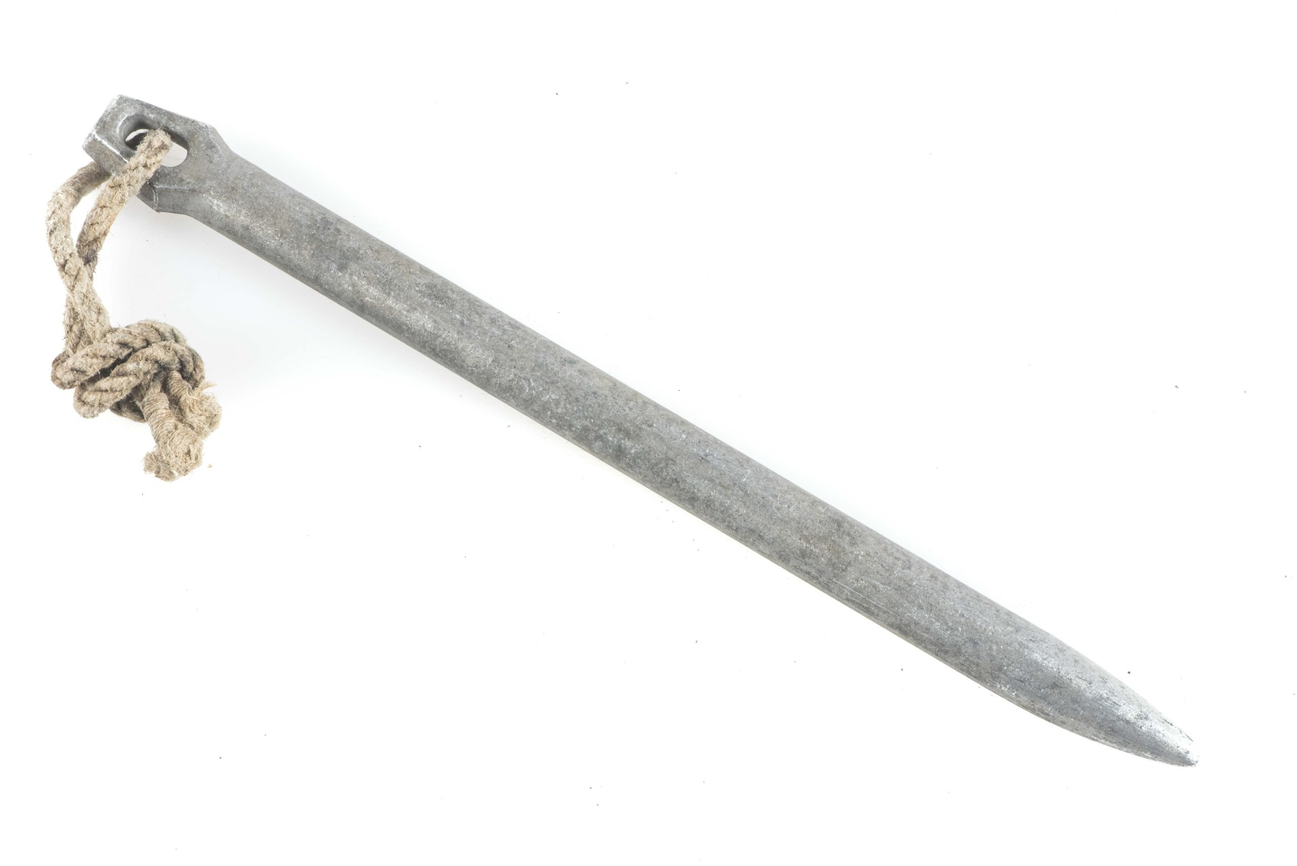 Excellent pre war aluminium single tent peg in very good condition. The tent peg is nicely markedRS 35which indicates production by an unknown manufacturer1935. The peg is original and complete with its factory attached cord!