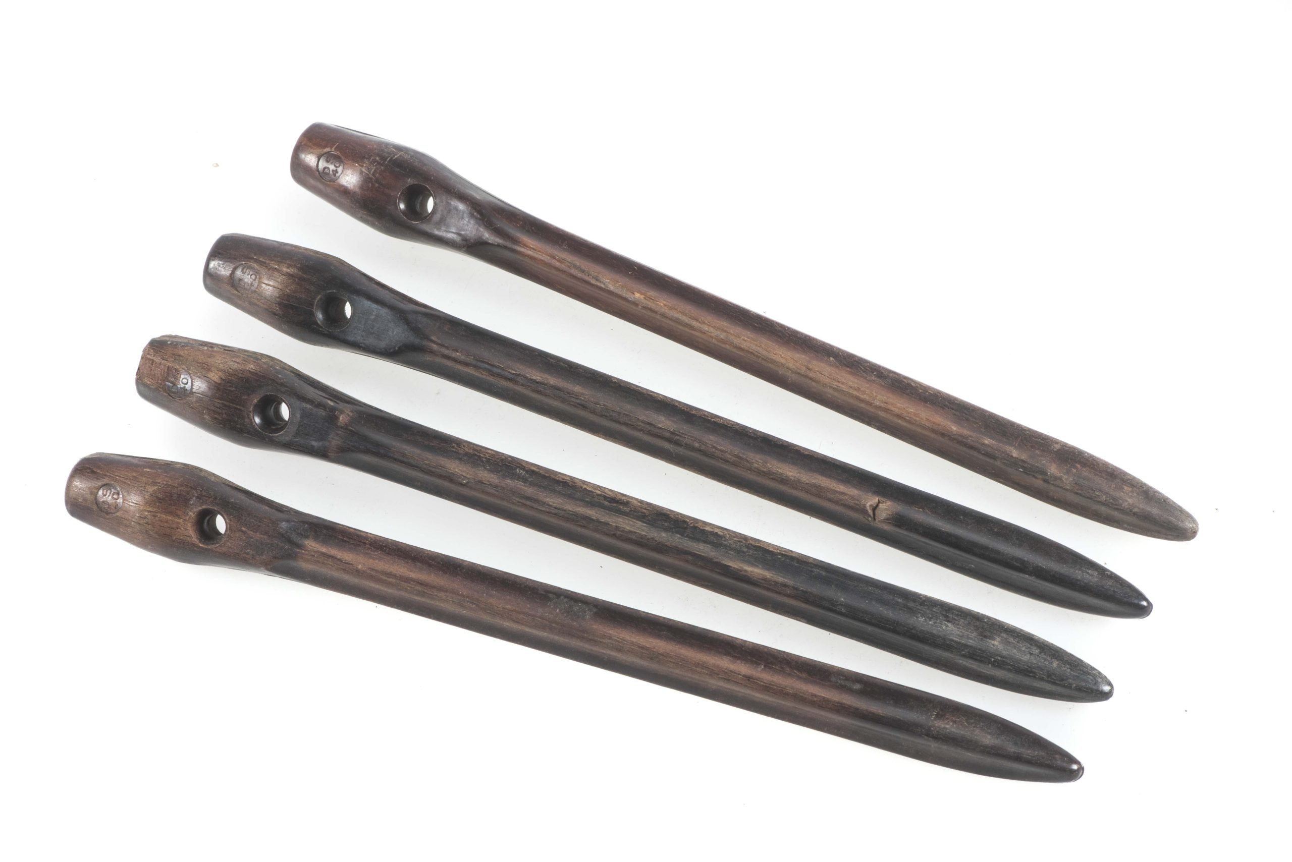 Four matching Zeltbahn pegs marked DS 40