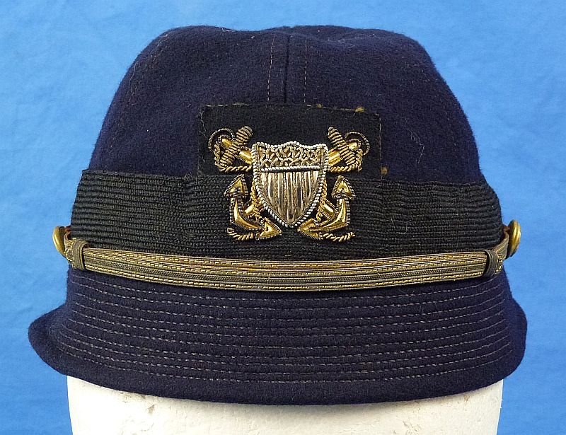 The blue wool cap shows age and use, but it is quite clean and in overall very good used condition.