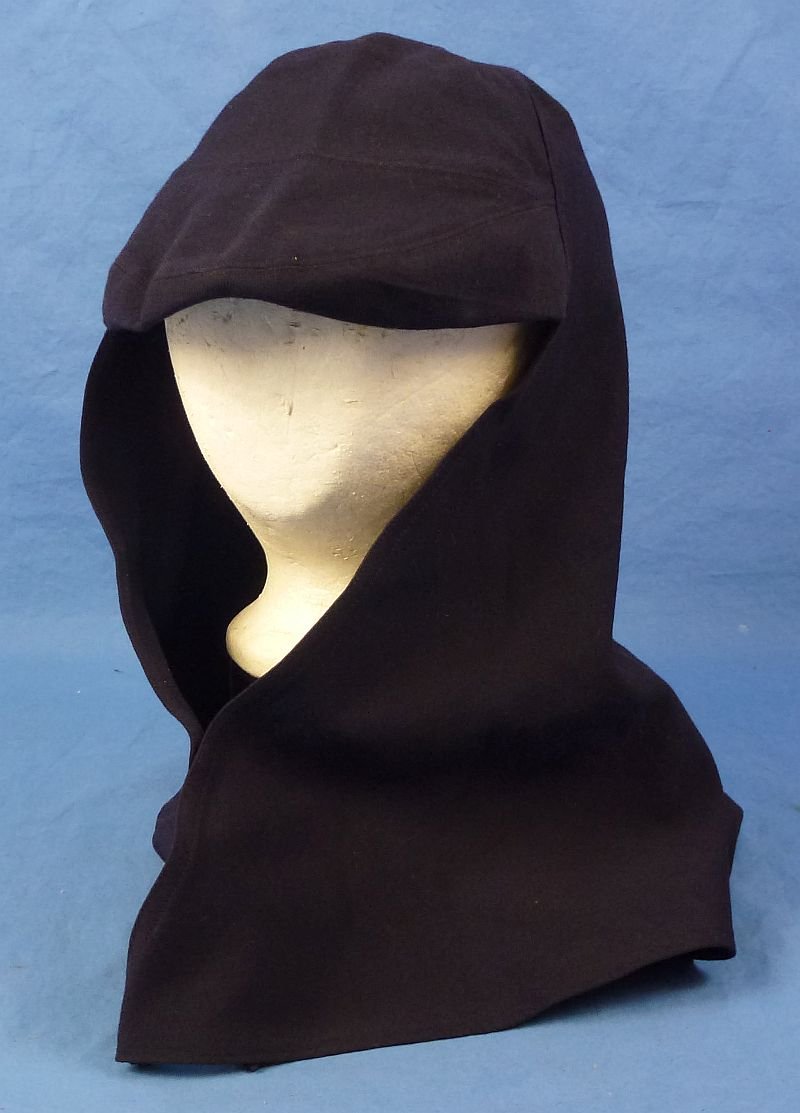 The blue wool hood is in excellent condition, without holes, damage or repairs. The interior is tagged as a size 22-1/2, and it is manufacturer marked and named to Lieutenant (j.g.) E. Cannon. Excellent condition.
