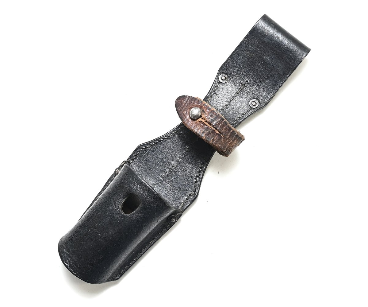 Very nice black leather k98 bayonet frog or 'Seitengewehrtasche' in used, but good condition.