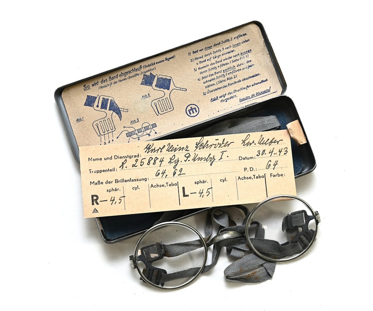 Very nice Wehrmacht issued Masken-Brille in its original case with label in good condition.