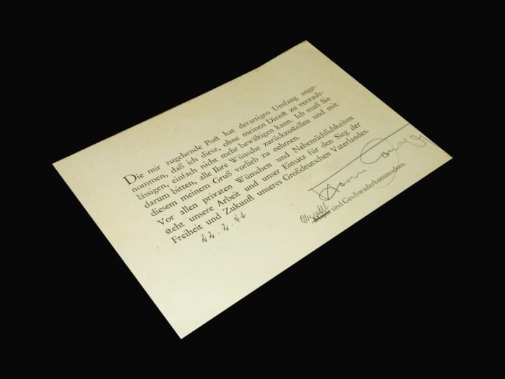 WW2 German Luftwaffe – OBERST HERMANN GRAF – WARTIME SIGNATURE – RARE!