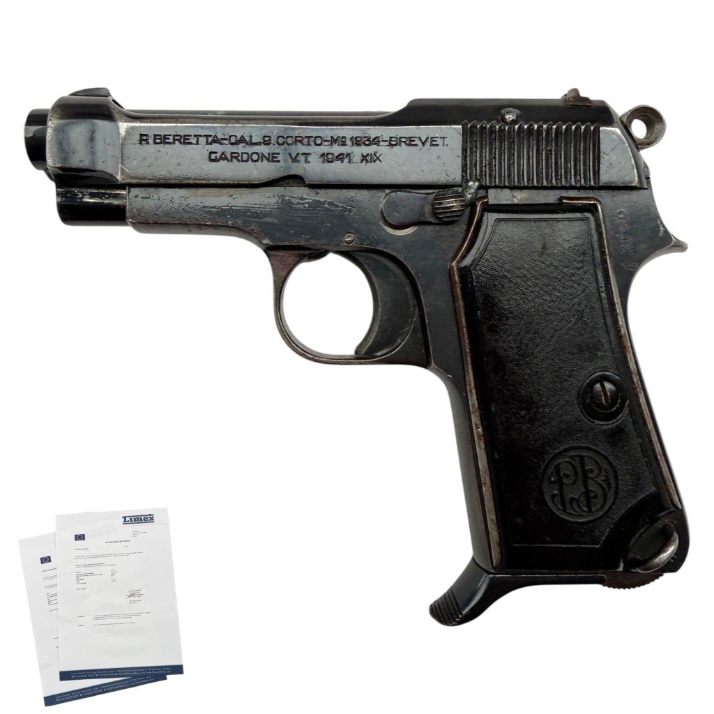This Italian is in good condition and has been deactivated according to European legislation.In combination with the two certificates, it is free to possess for collectors of18 years or older.It has no moving parts and it was produced in 1941.It was not only used by the Italian troops, but also German soldiers in World War II.Please note, this item comes from our own collection and anage checkwill be performed upon delivery and this item cannot be ordered throughPaypal.An iconic item for the World War II collection!Article number: 18227Originele WWII Italiaanse M34 Beretta EU-DekoDeze Italiaanse M34 Beretta verkeert in goede conditie en is gedeactiveerd volgens de Europese wetgeving.In combinatie met de twee certificaten is de M34 vrij te bezitten voor verzamelaars van18 jaar of ouder.Dit exemplaar heeft geen bewegende delen en werd geproduceerd in 1941.Let op: dit item komt uit onze eigen collectie en er zal eenleeftijdscontroleworden uitgevoerd bij levering.Dit item kan niet viaPaypalworden besteld.Een iconisch item voor de Tweede Wereldoorlog-verzameling!
