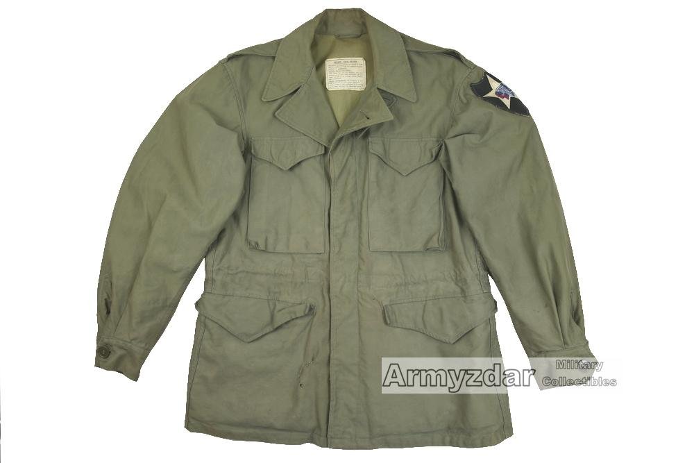 This is good used M1943 jacket. On the sleeve is sewn 2. Infantry Division patch. The jacket is size M, the label inside the pocket is washed out. Under the lower left pocket is hand sewn repair.Shoulders:49cmSleeve length:60cmBreast:108cmWaist:102cm