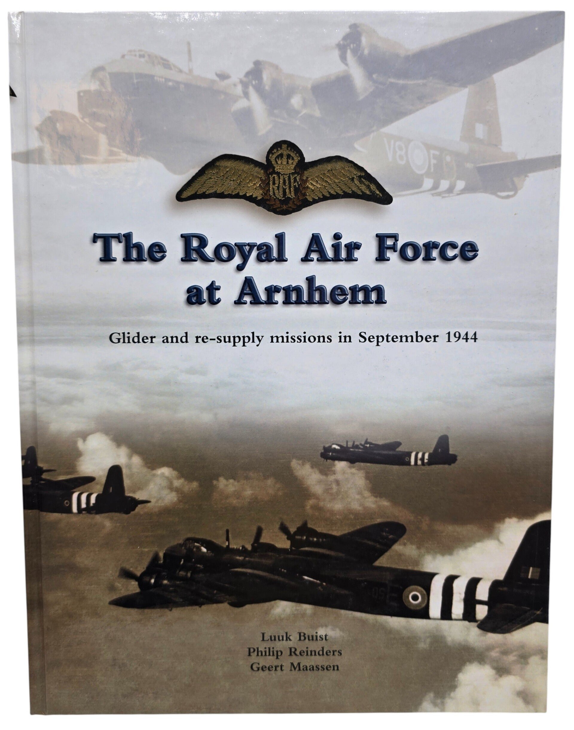 Original English Book – The Royal Air Force at Arnhem: Glider and Re-supply Missions in September 1944, Luuk Buist, Philip Reinders & Geert Maassen (2005)This book examines the role of the Royal Air Force during Operation Market Garden, with particular focus on the glider deployments and re-supply missions over Arnhem in September 1944. It details the planning and execution of airborne operations, the challenges faced by transport and bomber crews, and the heavy losses sustained during the effort to support British ground forces. Using archival research, eyewitness accounts, and photographic documentation, the work provides a detailed operational history of the RAF's contribution to the battle.Origineel Engelstalig Boek – The Royal Air Force at Arnhem: Glider and Re-supply Missions in September 1944, Luuk Buist, Philip Reinders & Geert Maassen (2005)Dit boek behandelt de rol van de Royal Air Force tijdens Operatie Market Garden, met bijzondere aandacht voor de zweefvliegtuiglandingen en bevoorradingsvluchten boven Arnhem in september 1944. Het beschrijft de voorbereiding en uitvoering van de luchtlandingsoperaties, de moeilijkheden waarmee transport- en bommenwerperbemanningen werden geconfronteerd en de zware verliezen die werden geleden bij de ondersteuning van de Britse grondtroepen. Op basis van archiefonderzoek, ooggetuigenverslagen en fotomateriaal biedt het werk een gedetailleerde operationele geschiedenis van de RAF-bijdrage aan de Slag om Arnhem.
