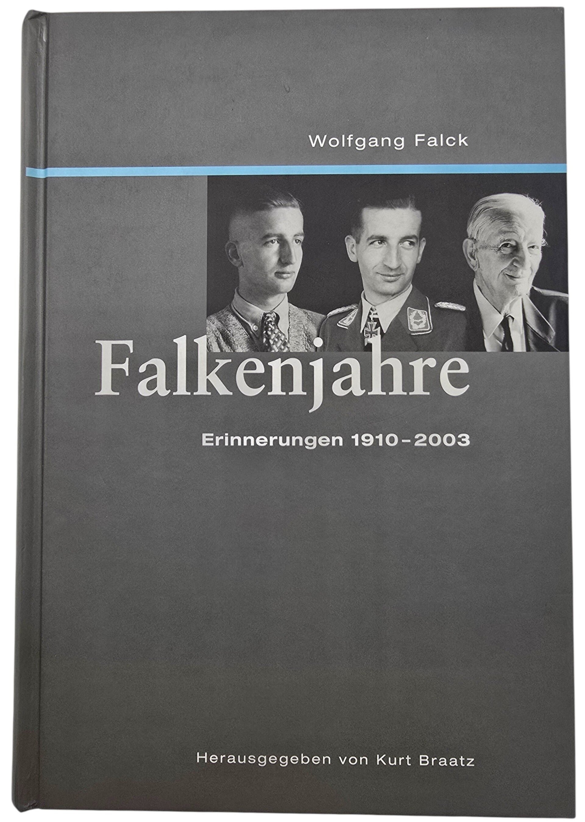 Original German Book –Falkenjahre: Erinnerungen 1910–2003,Wolfgang Falck, signed (2004)This memoir presents the life and career of Wolfgang Falck, one of the founding figures of Germany's night fighter force. Covering the years 1910 to 2003, the book traces his early life, service as a fighter pilot, and his key role in organising and commanding Luftwaffe night fighter operations during the Second World War. Beyond wartime experiences, the memoir also reflects on post-war captivity, professional life, and long-term perspectives on aviation and military leadership. Edited with commentary and contextual notes, the volume offers valuable firsthand insight into German air defence strategy and command structures.—Origineel Duitstalig Boek – Falkenjahre: Erinnerungen 1910–2003, Wolfgang Falck, gesigneerd (2004)Deze memoires beschrijven het leven en de loopbaan van Wolfgang Falck, een van de grondleggers van de Duitse nachtjagerstrijdkrachten. Het boek bestrijkt de periode 1910–2003 en behandelt zijn jeugd, zijn inzet als jachtvlieger en zijn centrale rol bij de opbouw en leiding van de Luftwaffe-nachtjacht tijdens de Tweede Wereldoorlog. Naast oorlogservaringen wordt ook aandacht besteed aan zijn krijgsgevangenschap, zijn naoorlogse loopbaan en zijn latere reflecties op luchtvaart en militair leiderschap. Met redactionele toelichting en historische context biedt het werk waardevolle inzichten in de Duitse luchtverdedigingsstrategie en bevelsstructuren.