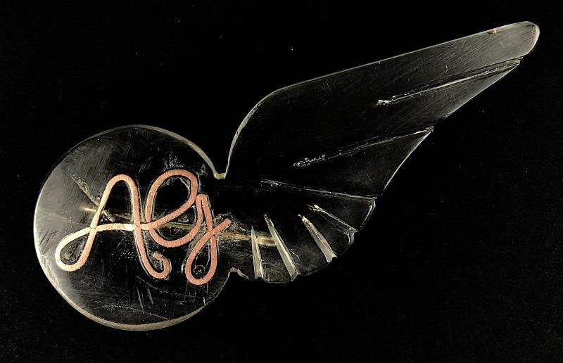 An unusual original Second World War period Royal Air Force one-off workshop trench art pin badge, skillfully handcrafted from salvaged perspex from a fighter aircraft windscreens in the form of a large Air Gunner half wing and sold to raise funds for the war effort. Very good condition, complete with safety pin style device.Wingspan approx 88mm.