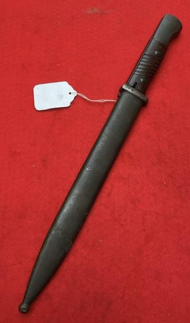 Matching number Alex Coppel, blued blade, with surface wear to tip, excellent dent free scabbard, excellent baker lite grips, press stud in good working order.Age restricted item