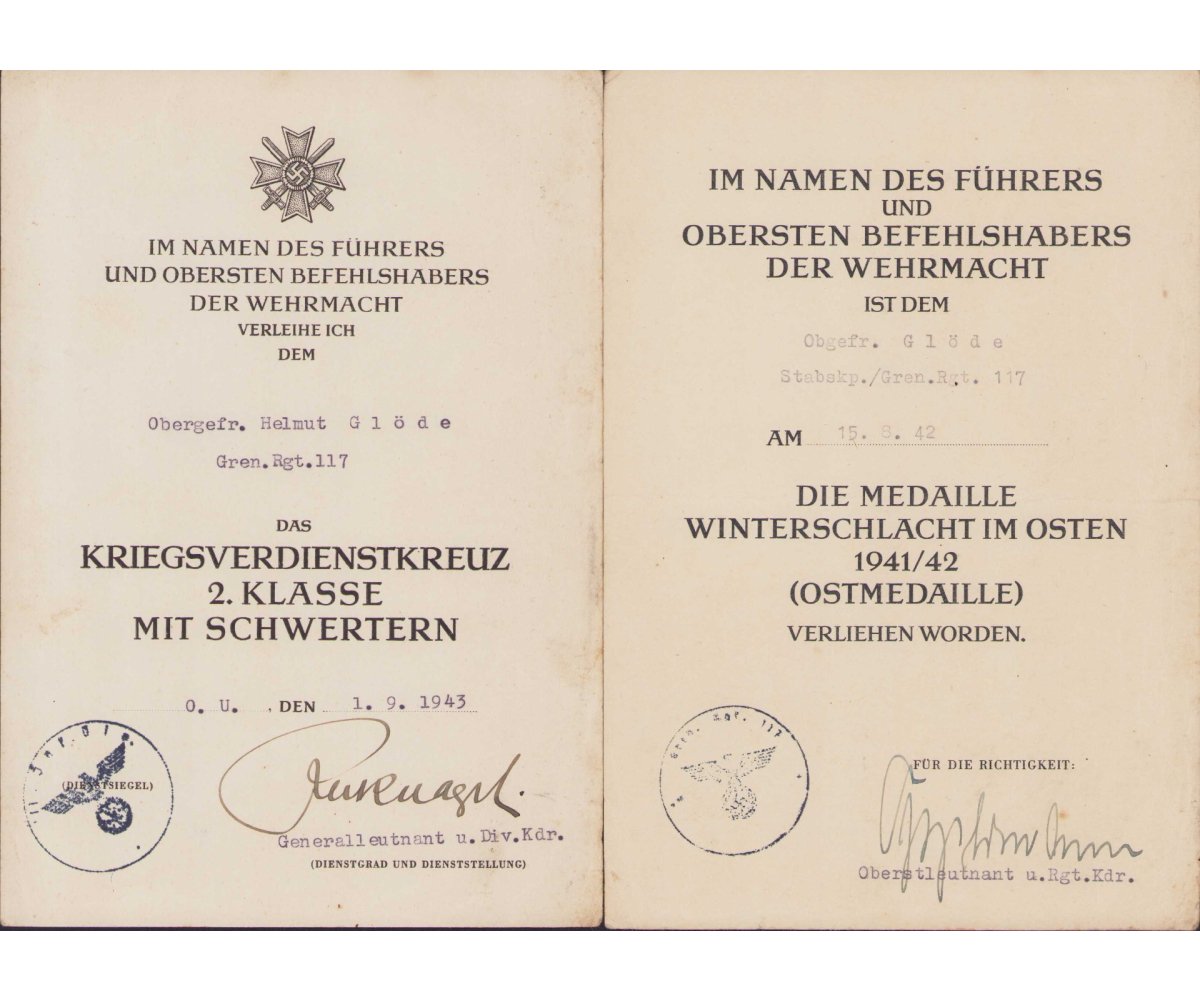 Gren.Rgt.117 KVK/Ost Urkunde Set