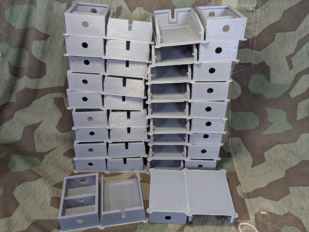 20 pack of 3D printed reenactmentSchü mineswithout fuses. This is the box only, taken straight off the printer. You will need to trim the supports, paint and assemble.Its like a model kit.For paint I recommend either Behr Classic Noir, or Dupli-color Dessert Sand. The hinge of the box is built into the print; just clip the top onto the bottom where the hinge nubs line up with the holes. These are really good, but not perfect. There may be minor defects in the prints, these do not effect how they work, but are cosmetic. They get better almost every time I print them, but I am not throwing out minor defects. These are made to be cheap and nearly disposable.A completed, painted example is shown in the pictures as an sample.Although these are part of our 'cheap and cheerful' line of reenactment items, they are still better than many more expensive options out there. Visually, these replicate the original very well and even have a wood grain effect on the sides. There is an extra vent hole in the backside to allow any 'pop' you figure out how to put into it to vent more safely and lessen the odds of it damaging itself. I will not suggest that you attempt to do anything with these for reasons.Why 'cheap and cheerful'? Cheap and safe while still looking good and being simple enough to be usable at events is far more important than durability. These are fantastic and cheap, not indestructible. In testing, I broke a few boxes by stepping on them, I broke a lot of the resin printed fuse parts, but I had almost none fail to work at least once.These are not infinitely reusable, they are cheap and pretty. You can have a mountain of these for the price of a handful of super durable ones you will probably just loose anyway. The Germans only made single use mines, these are slightly better than that.Additionally, do not think that I have given up on improving these over time. I am constantly testing and modifying designs to make them more durable and reliable. Over time they will get better but this base model is a great start and all the basics are there.