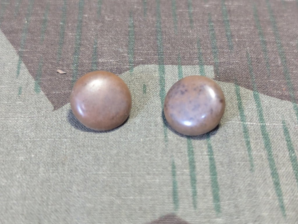 Original Gebirgsjäger steinnuss buttons, just the ticket to make your bergmutz authentic. Some blue coloring on the backs.The price is for 2 buttons.