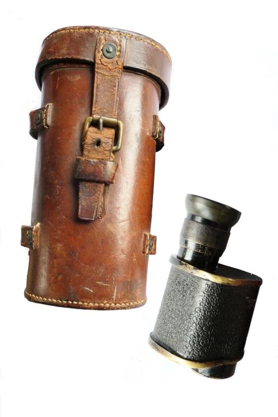 The No3 Mark II was a military prismatic binocular that was first adopted by the British Army in 1911, remaining in production throughout WW1. Interestingly, at some point in service these were converted into a monocular and now bears the British Army number, 'TK. 1073'. 'TK' being the army designation code used to identify 'Tank', of which there were around 2,500 in service during the Great War.This monocular comes in a leather issue case by Timbers and is dated 1925.Both the monocular and case are in very good and clean condition with some service and age wear but no damage.