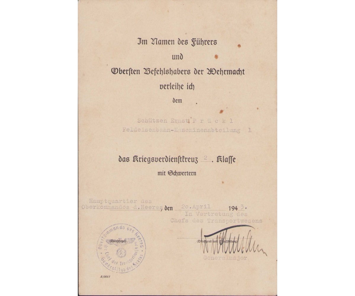 Feldeis.-Mas.Abt.1 KVKII Award Document