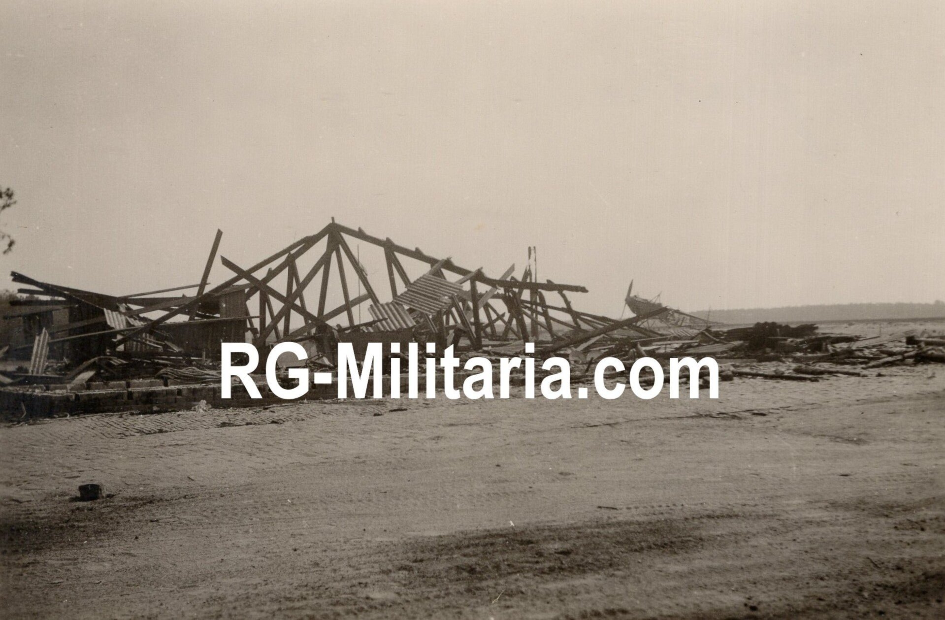 Original WW2 German Photo - Damage at Fliegerhorst Gilze Rijen, with a Fokker C V in the background, Holland, May (1940)