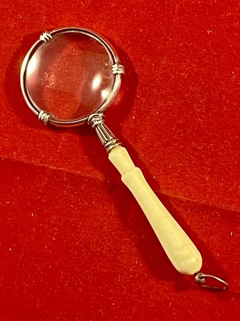Beautiful Antique Miniature Silver and Bone Magnifying Glass with London Import Mark c1920