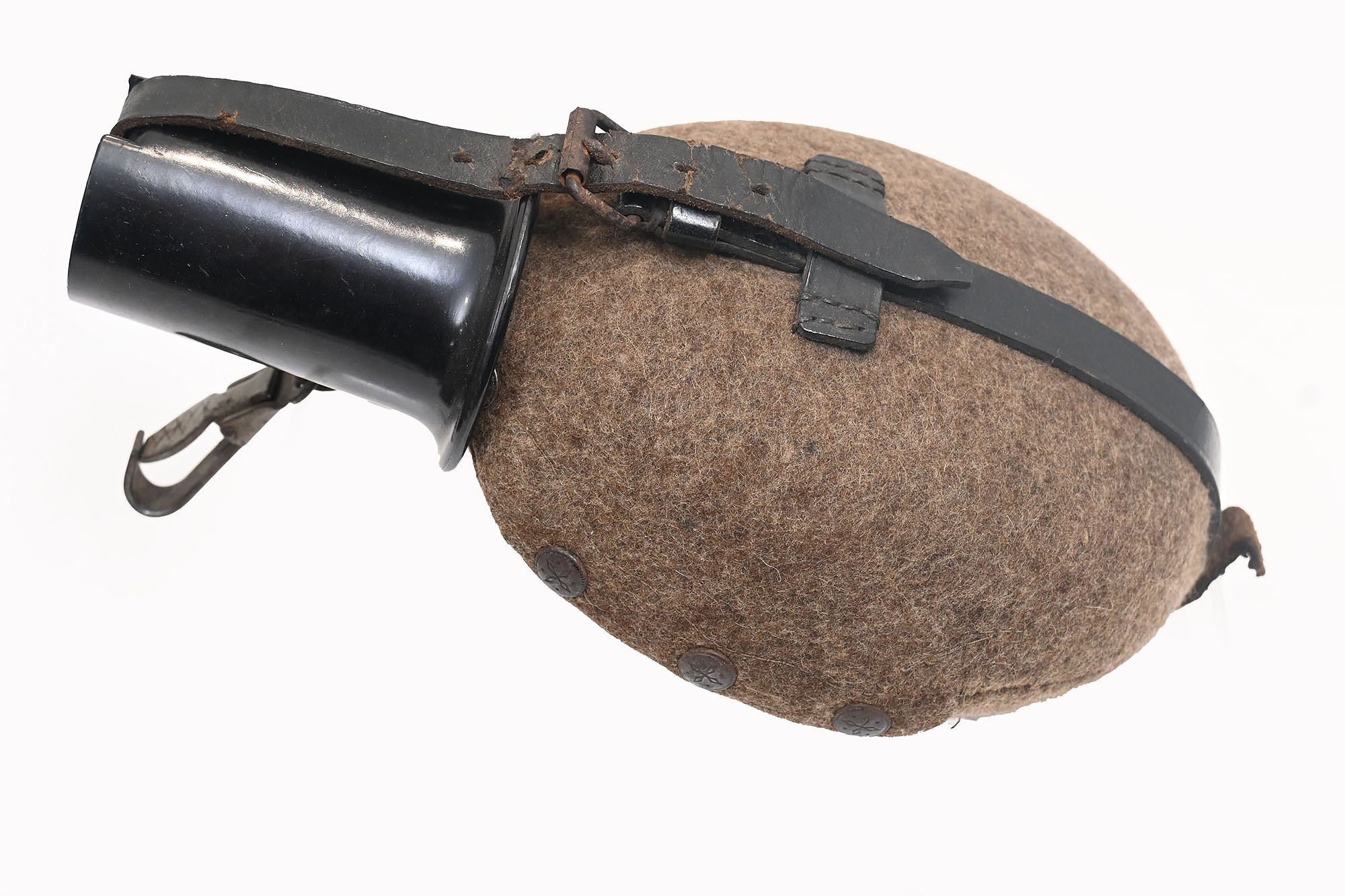 nice used m31 water bottle which is marked with fwbn41.The leather is used but not damaged and the cup is nicely intact and clearly marked.