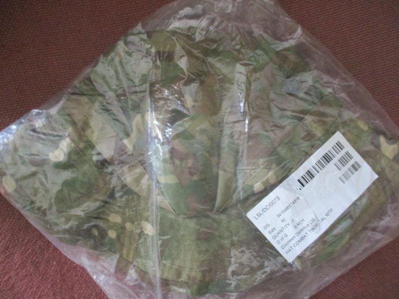 THIS IS A 100000% GENUINE ORIGINAL BRITISH ARMY / SAS ISSUE JUNGLE ' BOONIE ' HAT IN THE NEW UK MTP MULTI TERRAIN PATTERN ( MULTICAM ) WHICH WAS DESIGNED IN THE USA BY CRYE PRECISION FOR THE UK ARMY BEST CAMO IN THE WORLDFEATURES = LARGE 6.5 CM BRIM FOR PROTECTION FROM RAIN AND SUN , FOLIAGE CAMO LOOPS ROUND IT TO ADD CAMO , LIGHTWEIGHT FAST DRYING MATERIAL , 4 METAL AIR VENTS SO ALOWS AIR TO CIRCULATE AND KEEP BUGS AND MOSI'S OUT , ISSUE LABEL INSIDE IT ,rear removable sun flap to keep sun off back of neck . elastic shock cord chin strap with adjuster toggleA CLASSIC BIT OF BRITISH ARMY / SAS KIT ...protection from sun and keeps rain of face in jungle monsoonSIZE = 60cm = LIKE A SIZE large to xl = American size 7 3/4CONDITION = it is NEW STILL IN ITS PLASTIC WRAPPER