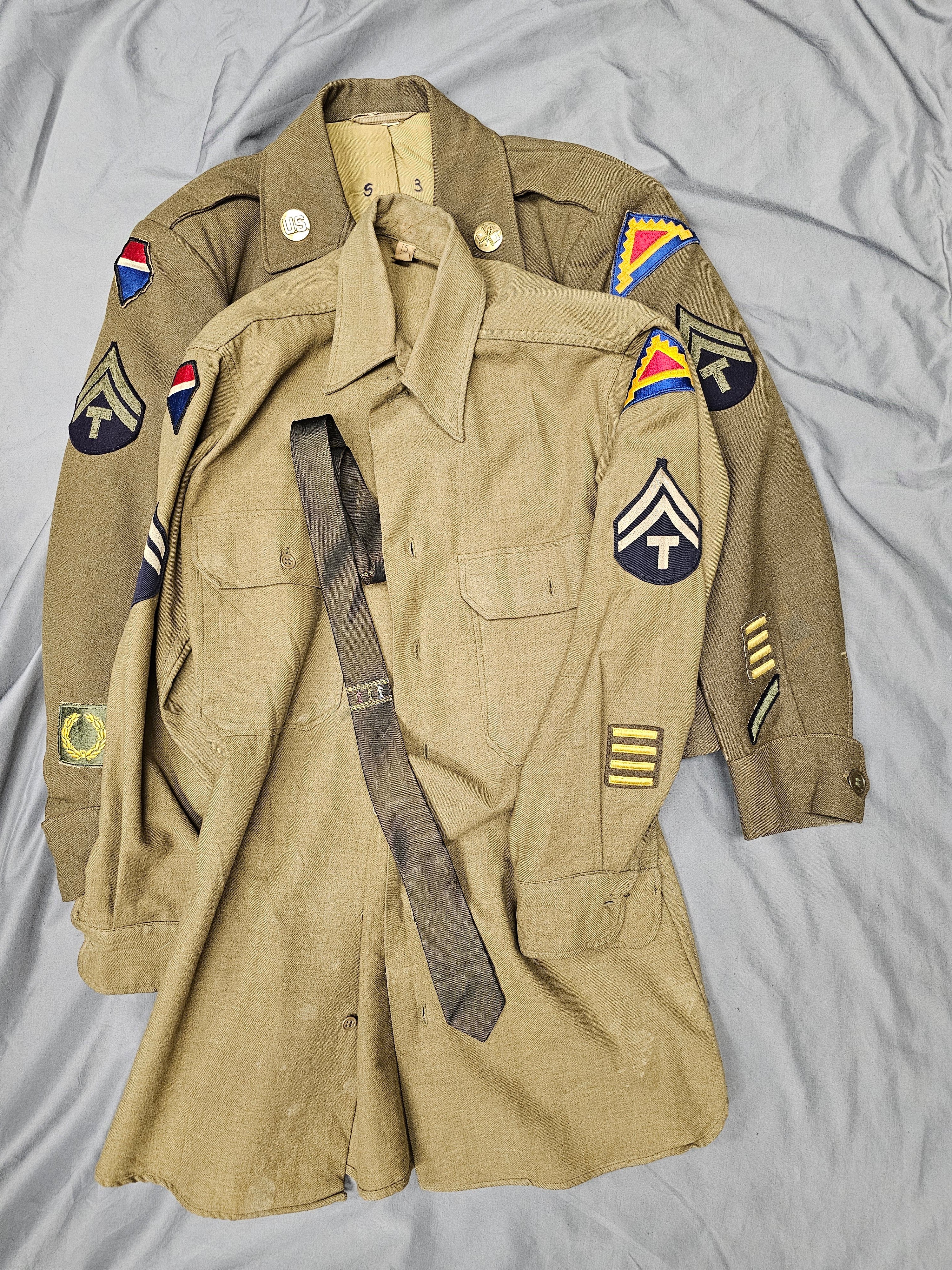 The uniform of Howard Edward Stow. Shipping fees included in the United States, packaging and handling is extra at checkout. Please email us at thewarfront1944@gmail.com for international shipping quote. Located in Kirkland location.