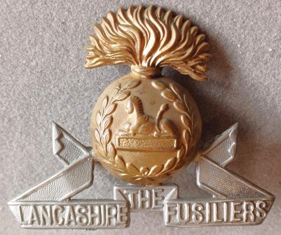 BRITISH - Lancashire Fusiliers Bi-Metal (5/6/7/8 Territorial Battalions) Hat Badge (KK1716)