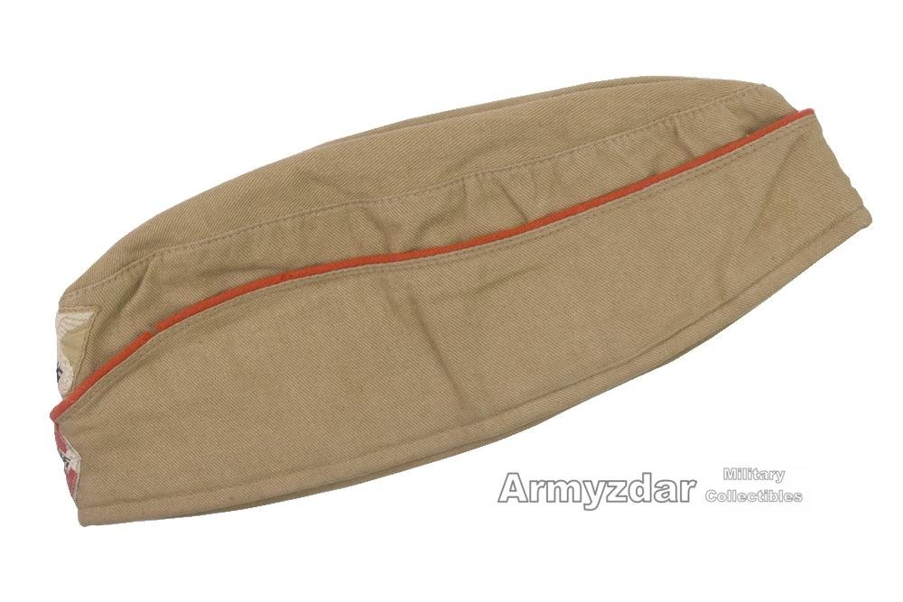 This is a rare early Hitlerjugend summer overseas cap in a nice condition. The cap has red wool piping and maker tag inside. Botl insignias are originla sewn.