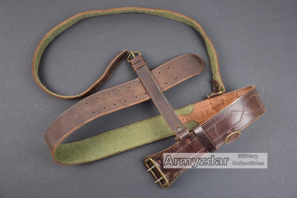 This is a very nice set of Czechoslovakina belt with cross tramp from first republic. The leather is soft, reverse is completely covered with green felt.