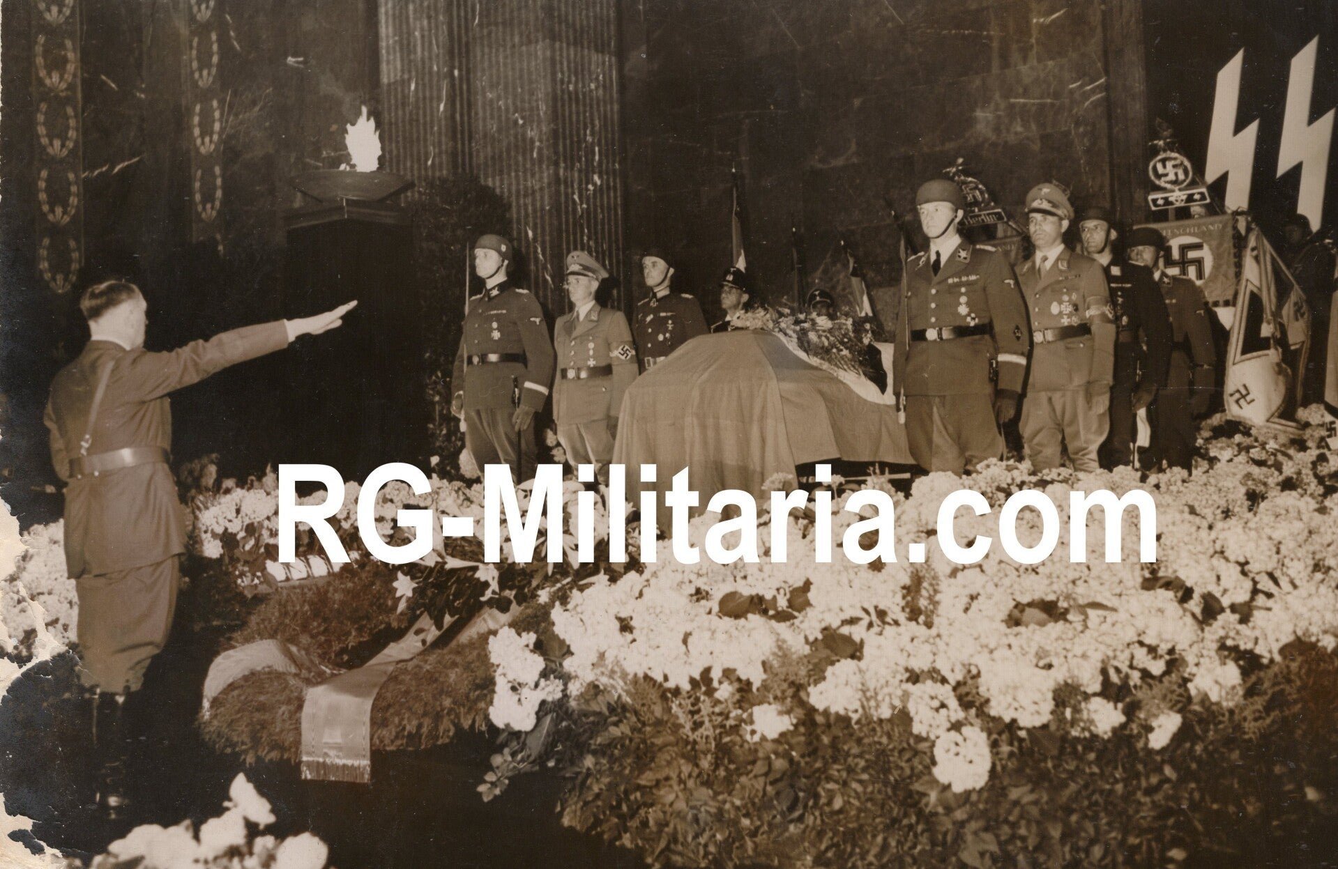 Original WW2 German Waffen SS Press Photo - Adolf Hitler salutes SS-Obergruppenführer Reinhard Heydrich during his funeral, Berlin (1942)