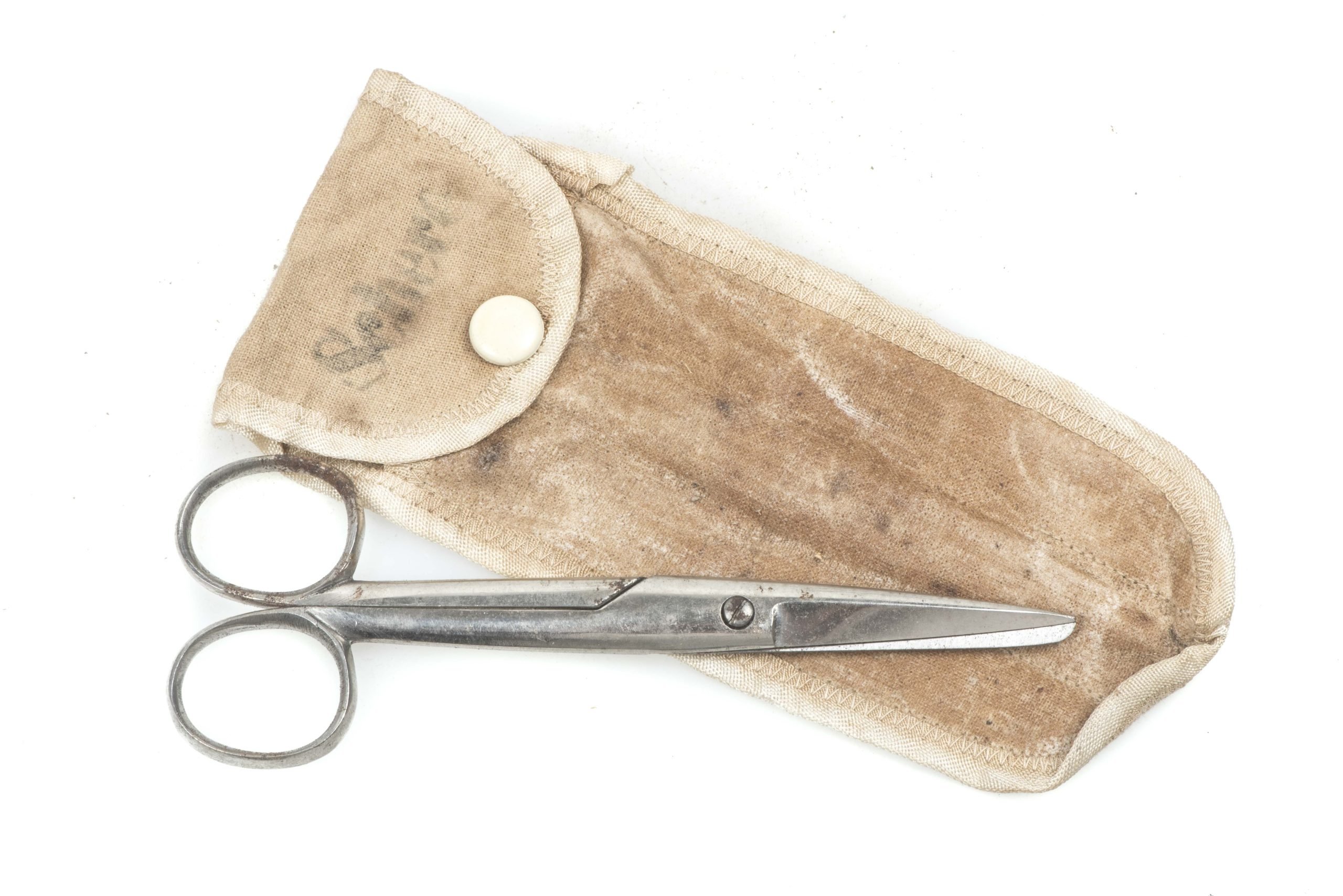 Rare scissors or Sanitäter Schere in its original pouch. typical piece that is a standard component of the Sanitätertaschen and Verbandkasten.