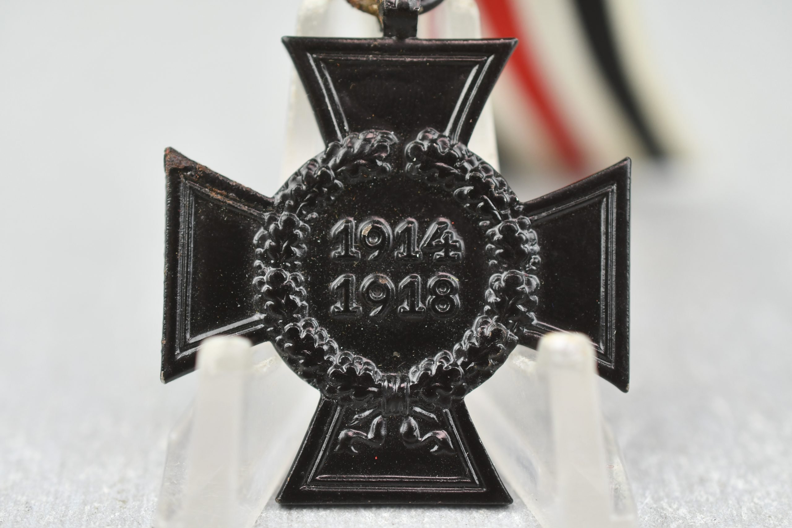 Original and rarely seend Honor Cross of the surviving widows and parents of those who fell 'Ehrenkreuz für die hinterbliebenen Witwen und Eltern gefallener Kriegsteilnehmer'. Black medal, steel construction, with no swords and reversed color ribbon. Maker marked by W.D.L. Comes with an original ribbon attached.The World War Cross of Honour was established on 13 July 1934 by Reich President Paul von Hindenburg on the occasion of the 20th anniversary of the start of the war in 1914 and was an award from the Nazi era for the participants and the surviving dependents of participants in the First World War. After Hindenburg's death on 2 August 1934, the Cross of Honour was awarded 'in the name of the Führer and Reich Chancellor', i.e. Adolf Hitler as head of state.'In memory of the immortal achievements of the German people in the World War of 1914/1918, I establish a Cross of Honor for all combatants, as well as for the widows and parents of those who fell, died as a result of wounds or in captivity, or went missing.'The Cross of Honor was awarded in three versions:Cross of Honor for Frontline Soldiers – with swordsCross of Honor for War Participants – without swordsCross of Honor for the surviving widows and parents of those who fell – without swords.
