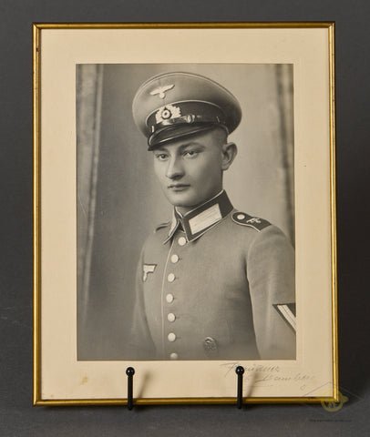 German WWII Original Photo of Heer Soldier in Original Brass Frame