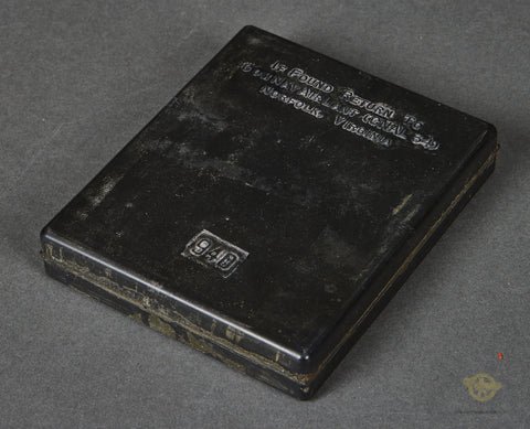 US Escape and Evasion 'Atlantic' Kit-These 'Atlantic' kits were documented in the wonderful hardcover book; United States Navy Wings of Gold from 1917 to the Present by Tomas Carmichael and Ron Willis. In it the authors show photographs of an unsealed 'Atlantic' kit and wrote:World War II United States Navy Escape and Evasion Barter 'Atlantic Kit'. The contents of the sealed hard rubber kits varied in contents, they were developed for use in Europe and Pacific theaters and they were issued to certain airmen. Referred to as 'barter kits' for use in case of an emergency landing or bailout in an unfriendly or primitive area overseas. The airman could barter in aiding escape and evasion in difficult situations by local civilians. The kits being of such value were a controlled item and each kit had its own serial number. They were accountable, and the airman had to sign for each kit upon issue and return as instructed if not used.Note: Gold value during this time period was approximately $25 per ounce market value.These kits were issuedto Navy pilots and aircrew. The sealed container contained approximately .90 troy ounces of gold. The gold consists of 5 coins and three rings as follows: French 20 Franc, French 10 Franc, British Sovereign, 2 British Half Sovereigns, and 3 Gold Wedding Band Rings (two at 20K and one at 9K). All designed for military personnel caught behind enemy lines to use as barter, the outside of the kit reads 'IF FOUND RETURN TO COMNAVAIRLANT (ONAL 34) NORFOLK, VIRGINIA'. All of this is contained in an individually numbered solid rubber block that measures approx. 3 ¾ inches by 4 ½. Inches In size. This is sealed in rubber and is marked with a serial number 940. After an x-ray was performed on this particular kit to determine that it is complete and never tampered with, you can even see the lead data plate inside the kit which clearly reads 940. A printed copy of the x-ray will be included with the purchase of this kit.Many of these kits were sold by the Department of Defense in the early 1980's and sealed ones are extremely rare as the sets are not resealable. A copy of the paperwork from the DOD Auction is also included. This is an exceptionally rare kit that has value for both the gold and historical context in which it was used. A very special offering.