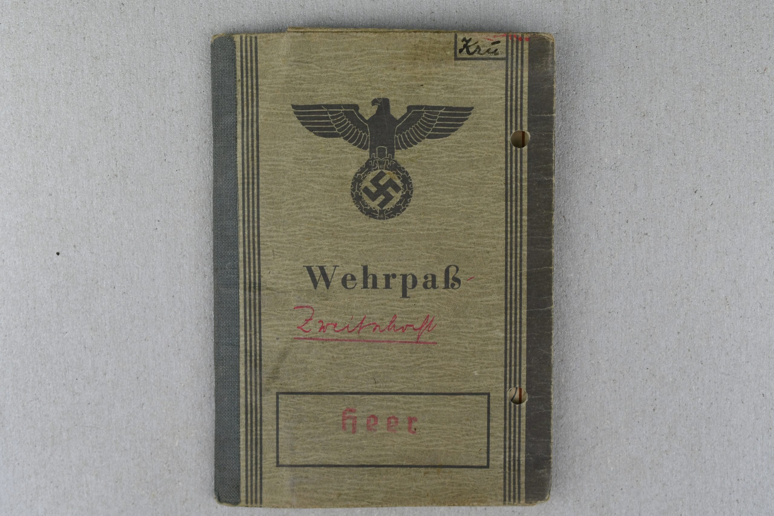 Interesting army Wehrpass in good condition. So called Zweitschrift – second edition because the first one was damaged or simply lost. Complete with entries from 1939 until the end in 1945. Served in Western Europe and Russia in servaral Pionier units. Ended the war in Leichte Pionier Kompanie (Motorisiert) 'Schellenberger'. Was awared the General Assault Badge, Eastern Front Medal, Iron Cross 2nd class and Black Wound badge. The last one he got for a wound in 1943 at the Russian Front.