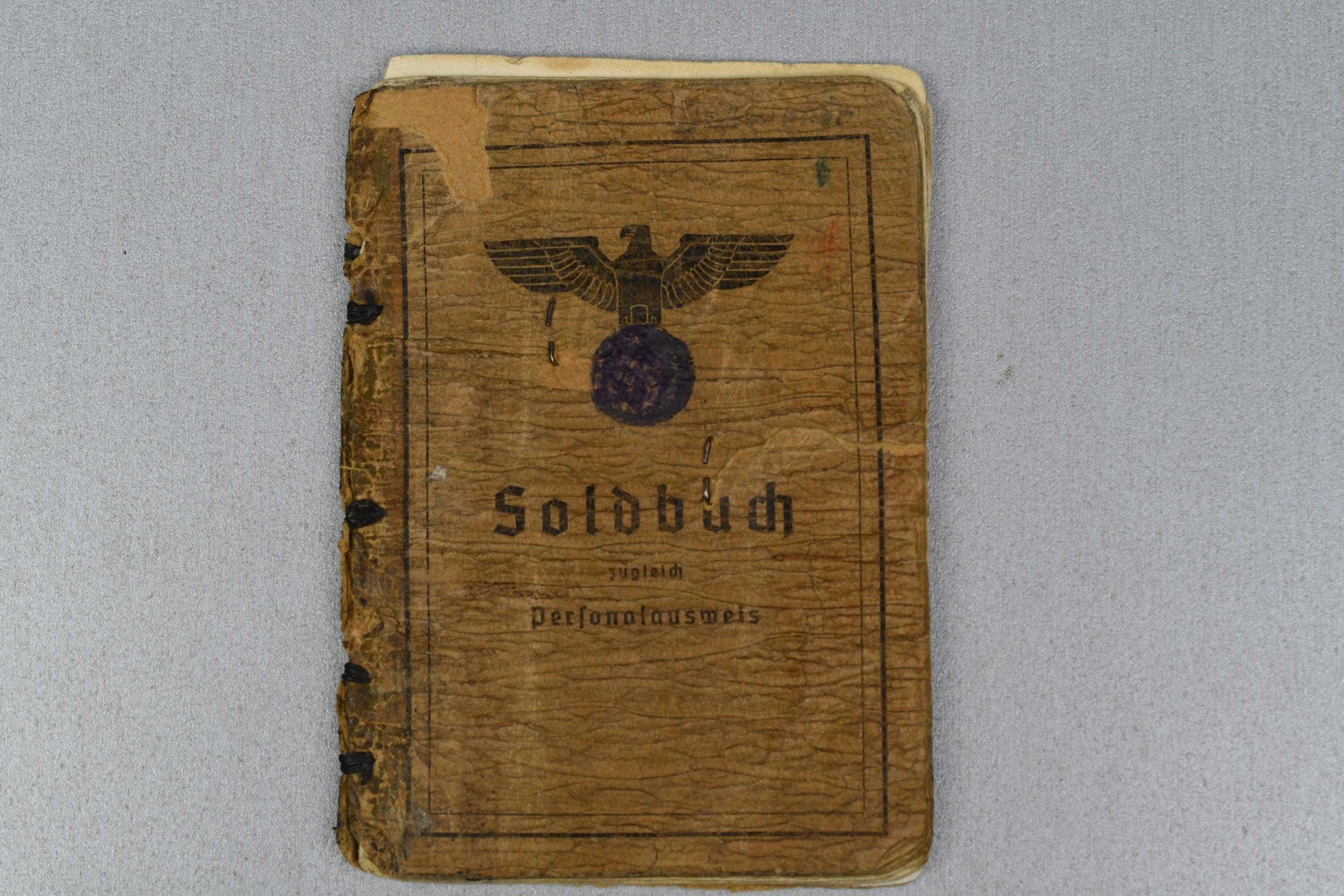 Heavy worn and used army Solbuch of Unteroffizier Lothar Bosswetter. Shows extensive and multiple entries. Enlited in Grenadier-Regiment 192. Shows multiple wounds and was thus received the Wound Badge in Black and Silver. Also received the Iron Cross , Infantry Assault badge and seldom seen Close Combat Clasp in Bronze!