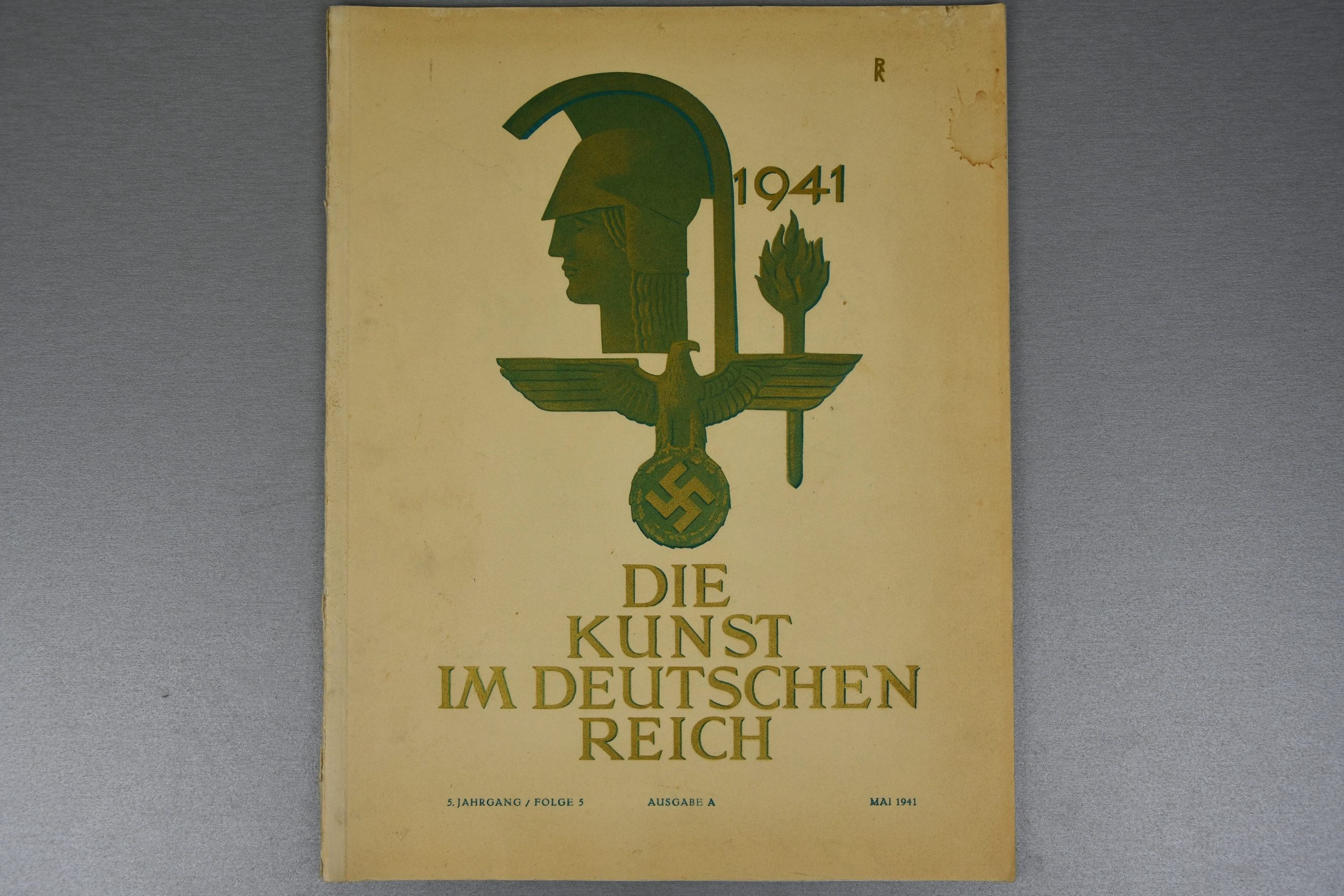 Original magazineDie Kunst im Deutschen Reich, May 1941 edition (5th year, issue 5, Ausgabe A), in good used condition. This slightly thicker issue is an early publication from the formative years of the Third Reich and focuses on art and culture within National Socialist Germany. The example shows light age and handling wear consistent with its age but remains complete and well preserved. A characteristic and desirable collectible within the field of Third Reich and WWII-related documentation