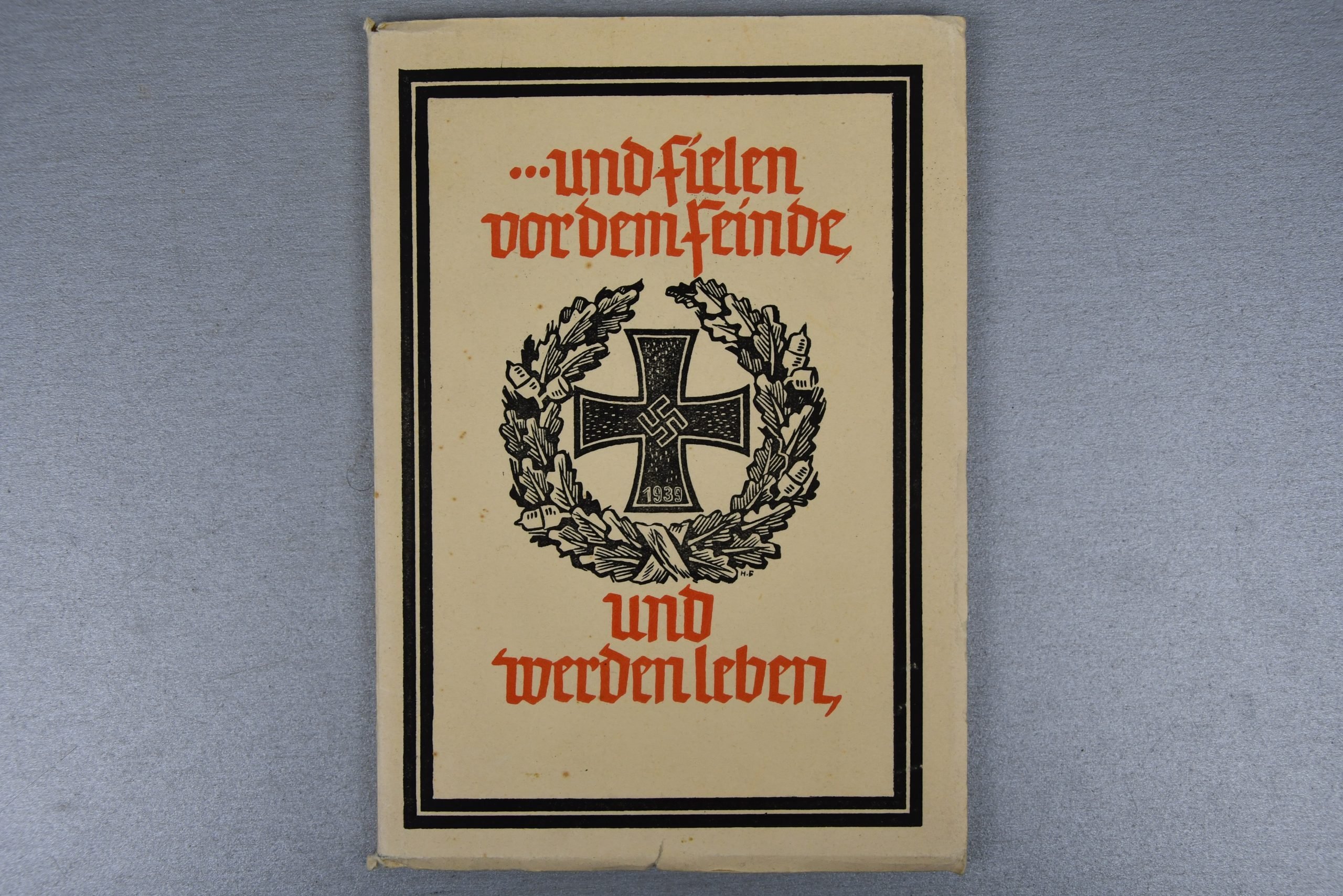 Original papercover edition…und fielen vor dem Feinde – und werden leben, subtitledEin Trostbuch für alle, die um Gefallene trauern, written by Friedrich Ronneberger and published in 1942 by Heinrich Beenken Verlag, Berlin. This condolence book was intended for families mourning fallen soldiers and reflects the style of the period. The copy shows light cover wear and normal age-related signs but remains complete and solid. Collectible within WWII-era literature.