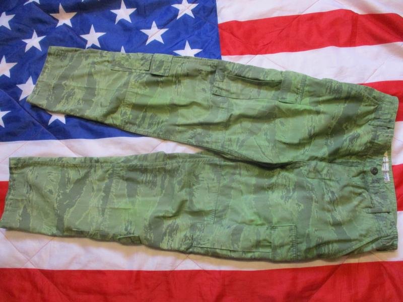100% genuine USAF ISSUE pants / ABU DESIGN IN THE USAF ABU DIGITAL TIGER STRIPE CAMOMADE FROM 50% NYLON 50 % COTTON m65 twill SAME AS USED IN THE FAMOUS m65 jacket / UNIFORM .MADE IN USA BY AMERICAN APPAREAL IN THE USACOLOUR = US AIR FORCE ABU DIGITAL TIGER STRIPE OVER DYED A LIGHT JUNGLE GREEN COLOURFEATURES = ISSUE LABEL INSIDE WITH NSN NUMBER ON IT , THE trouser HAS , 2 HAND POCKETS , 2 BACK POCKETS WITH BOUBLE BUTTON CLOSURE , 2 CALF POCKETS , 2 LARGE LEG BELLOW POCKETS WITH BUTTON CLOSURE FLAPS , BUTTON FLY WITH STORM FLAP , RE-ENFORCED SEAT AND KNEE AREA , PART ELASTIC WAIST FOR PERFEC FIT .CONDITION = WORN USED ,I CAN NOT SEE OR FIND ANY HOLES RIPS ETC . one replaced button on fly and small sewn repair on side above cargo pocket , BEEN DYED A JUNGLE GREEN COLOUR , .AS IN THE PICTURES /SIZE = 34 INCH waist / SHORT leg ..TO IT 34' WAIST / 31' INSIDE LEG ( MEASURES 17' OR 44CM ROSS WAIST BAND WHEN LAID FLAT AND WILL GO UP TO A 34' WAIST