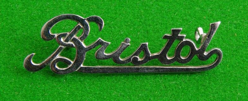 Scarce 1940's era chromed bus drivers cap badge with two loops to the reverse, The title, ' Bristol ' in script form.