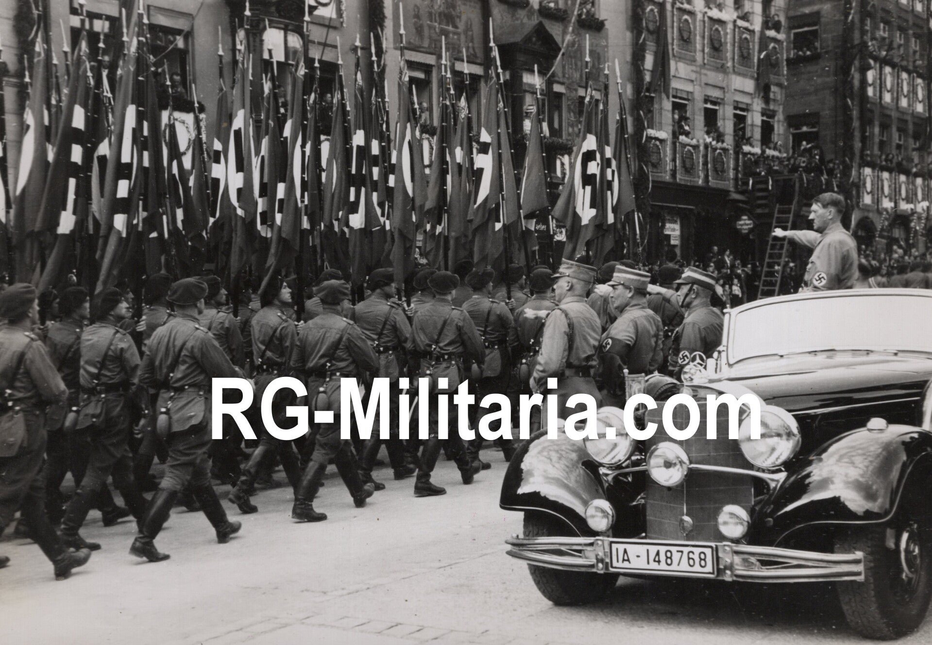 Original WW2 German Press Photo - NSFK NS Fliegerkorps parade, Adolf Hitler and Friedrich Christiansen salute, Reichsparteitag Nürnberg (1938)