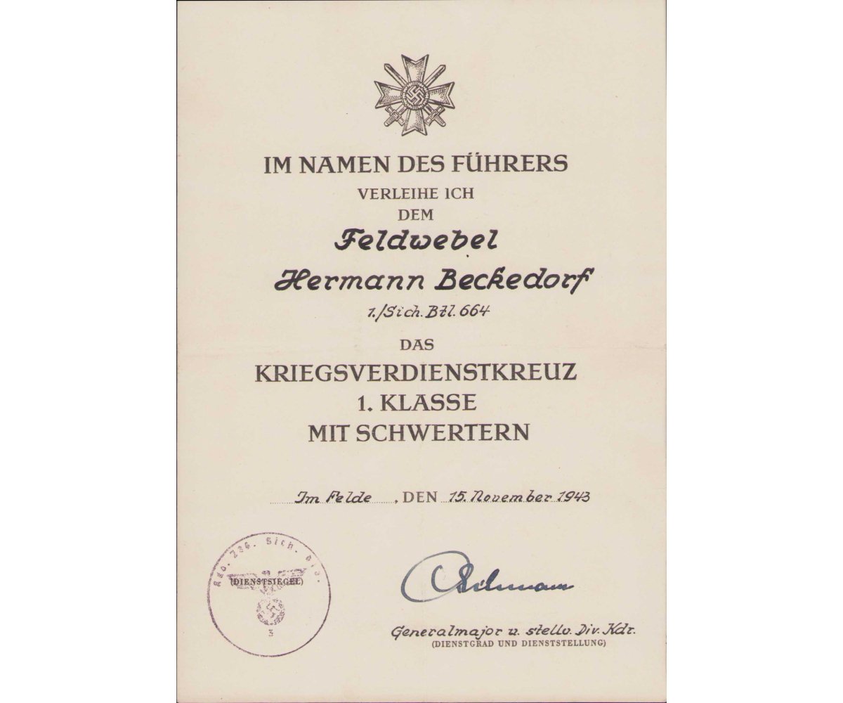 Sich.Btl.664 KVK1 Award Document